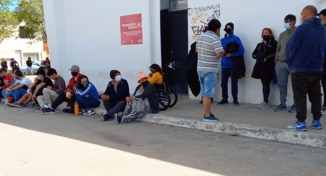 Varios vecinos que se encuentran en el lugar haciendo fila destacan que nadie les dijo a qué hora empiezan a entregar los turnos ya que la vacunación de Sputnik comienza a las 15 horas y Pfizer a las 16 horas.