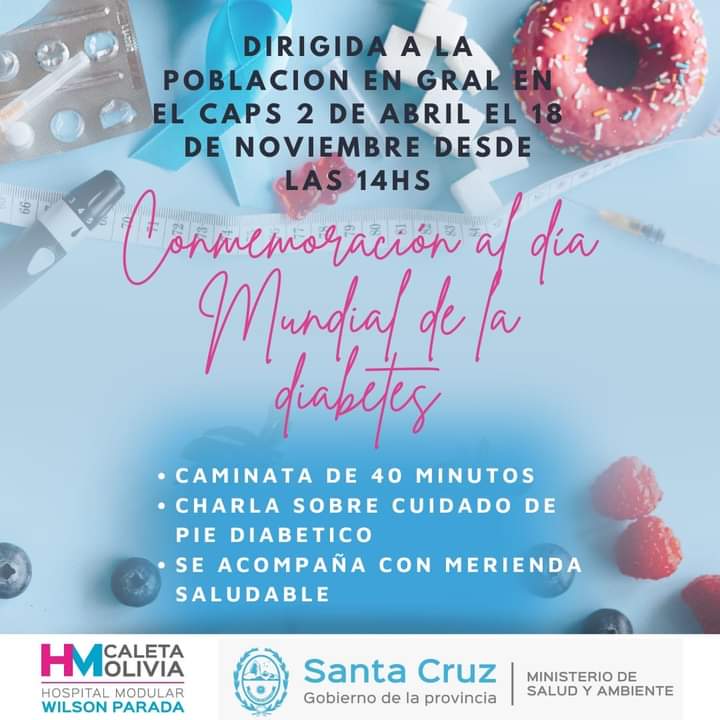 Si bien el Dia Mundial de la Diabetes es cada 14 de noviembre, esta propuesta abierta a la comunidad se concretara el próximo sábado 18 a partir de las las 14 horas y no requiere inscripción previa, según detalló Alicia Vázquez como referente del equipo de salud, en diálogo con el programa "El Oso" que se emite por Radio San Jorge.