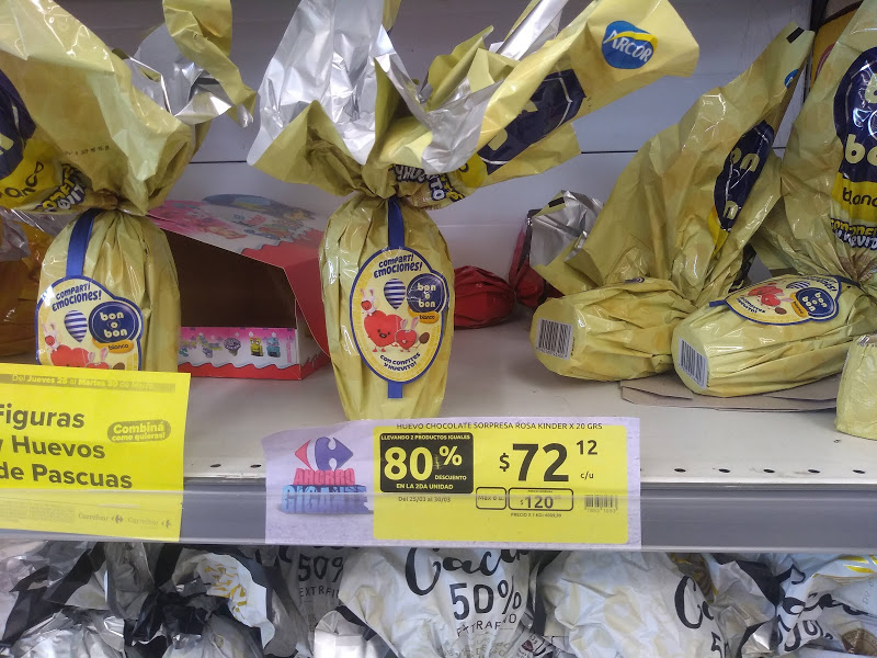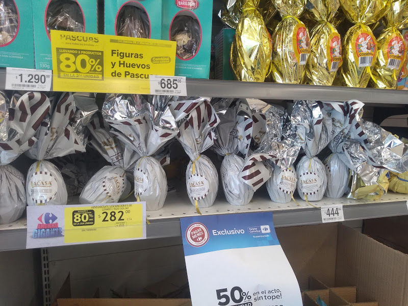 Entre estos, hay muchas marcas, muchos precios, para todos los gustos y tamaños, que en las grandes cadenas de supermercados, a pocos días del domingo de resurrección, ofertan en 2x1, 50 y hasta 80% de descuento en segundas unidades.