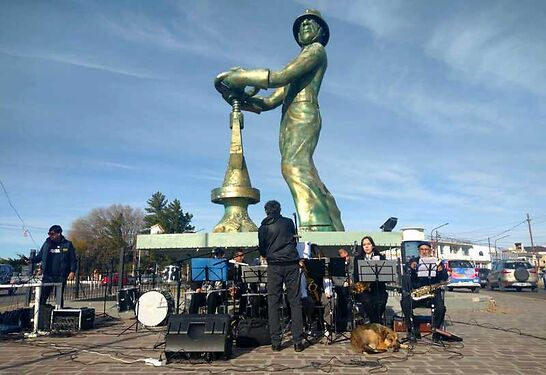 11/05/2022 - En el día del Himno Nacional Argentino la banda caletense "La Sincopada" entonó las estrofas de nuestro Himno Patrio a los pies del monumento al obrero petrolero. ...