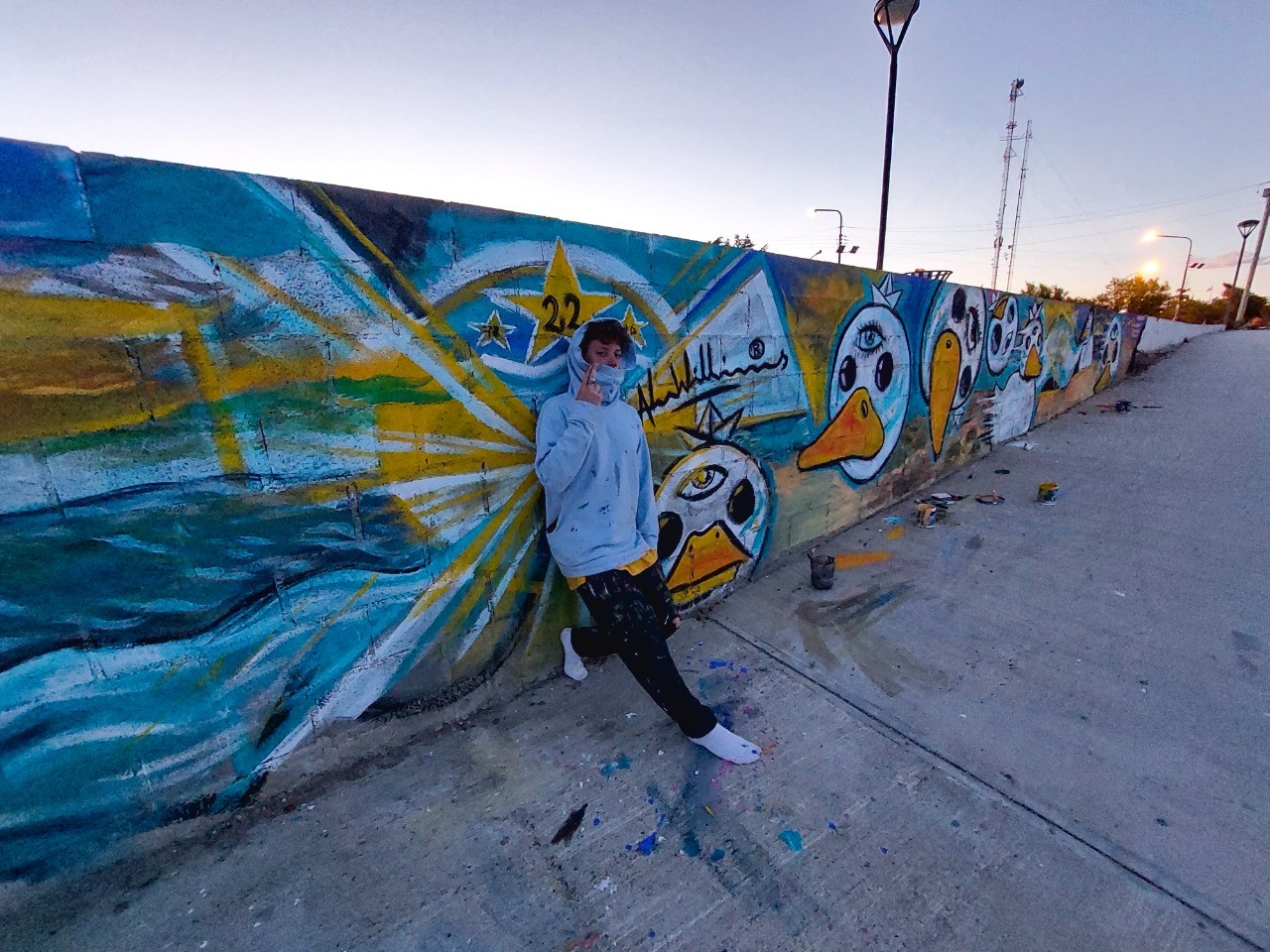 "Coral More", el joven artista pintó un mural dedicado al mar, el petróleo y a la copa mundial CALETA OLIVIA